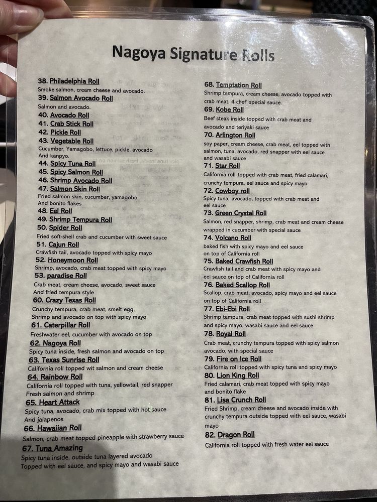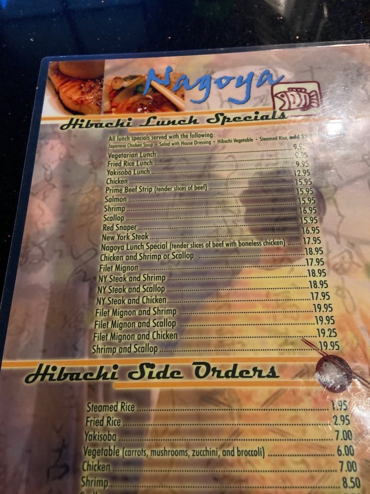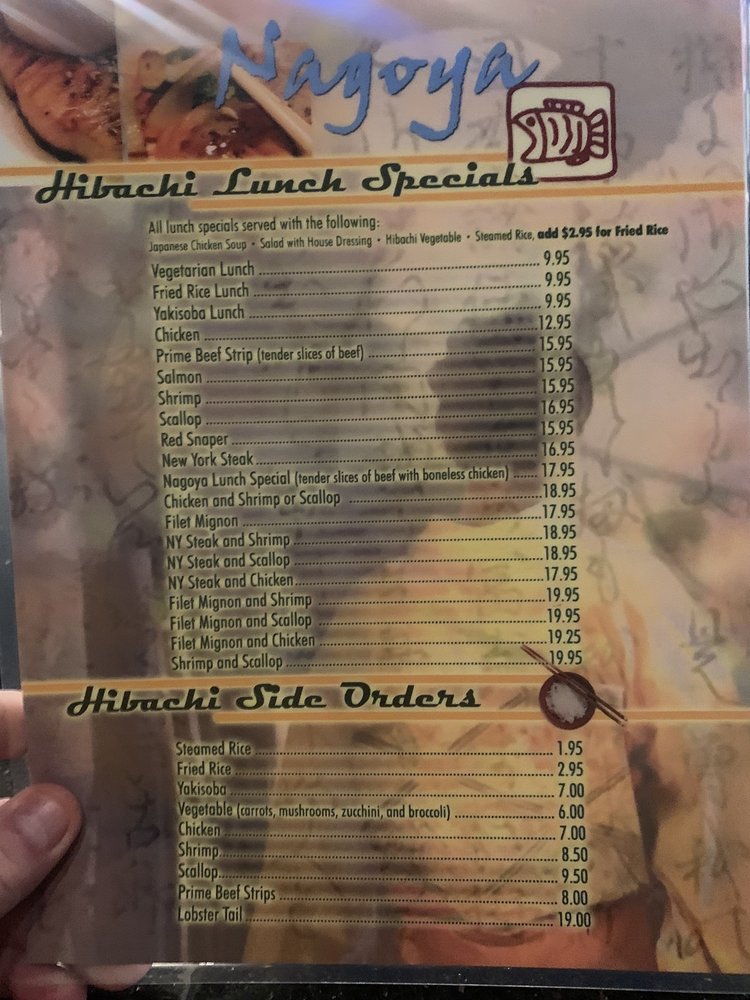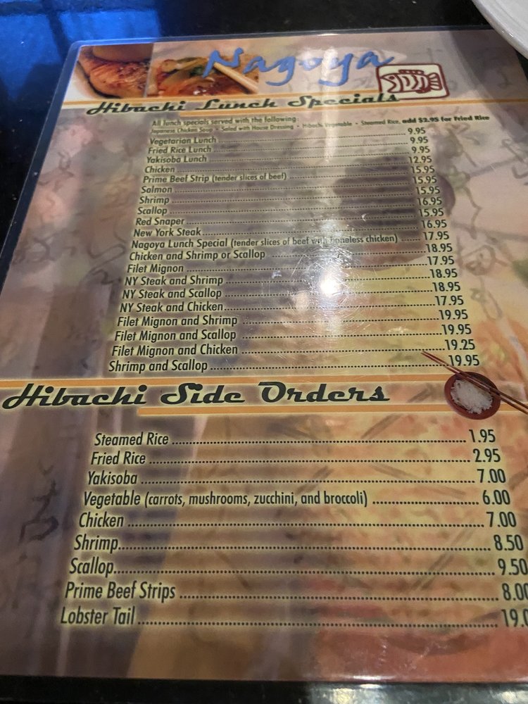 Nagoya Japanese Restaurant in Arlington, TX offers a diverse menu with a variety of options for both meat lovers and vegetarians. With a casual and welcoming atmosphere, Nagoya provides a comfortable dining experience that is great for groups or even a date night. The hibachi meals come highly recommended, with delicious sauces and skilled chefs providing an entertaining show. Customers praise the quality and taste of the food, particularly highlighting the hibachi specials and sushi options. The restaurant also offers lunch specials that are reasonably priced and tasty. Overall, Nagoya Japanese Restaurant provides a satisfying dining experience with great ambiance and a range of delicious dishes to choose from.